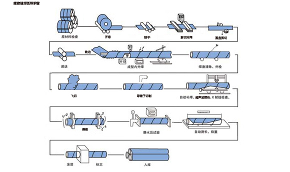 螺旋缝埋弧焊钢管工艺流程: