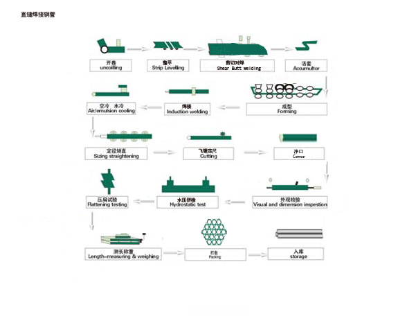 直缝焊接钢管工艺流程: