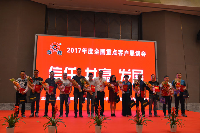 4月17日,唐山京华2017年度全国重点客户恳谈会在成都希尔顿大酒店召开。来自全国各地的120余家重点客户170余名代表应邀参加了会议。公司总经理温朝江、供销副总兼销售部长胡武、销售副部长吴红涛及部分销售骨干、驻外业务经理等40余人参会。协办单位成都彭州京华总经理包振升、供销副总胡万享、财务总监谭宁等10名主要领导干部出席会议。