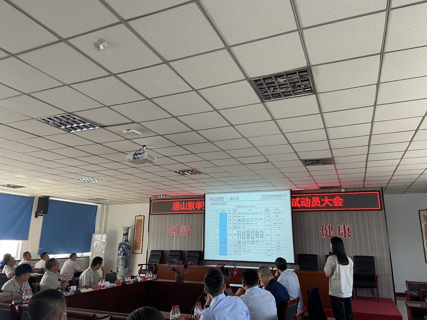 5月22日上午,唐山京华整体信息化项目UAT测试动员大会在公司办公楼五楼会议室召开。日照钢铁助理副总经理夏侯洪波、唐山京华总经理温朝江、京华日钢(日照)信息技术有限公司总经理高新永等领导出席会议。项目各业务小组组长、副组长、联络员及组内成员120余人参会。