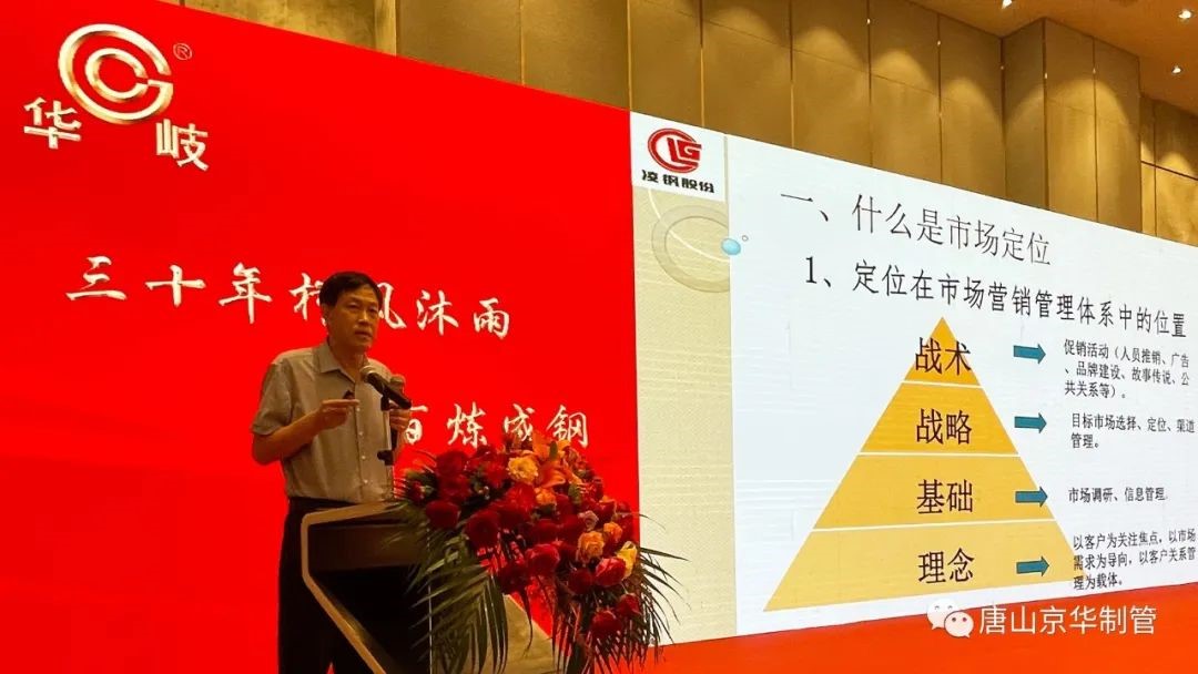 凌钢销售公司总经理周国峰对本次会议的顺利召开表示祝贺,开展《赢之有道-论营销中的市场定位》为主题的专题讲座。